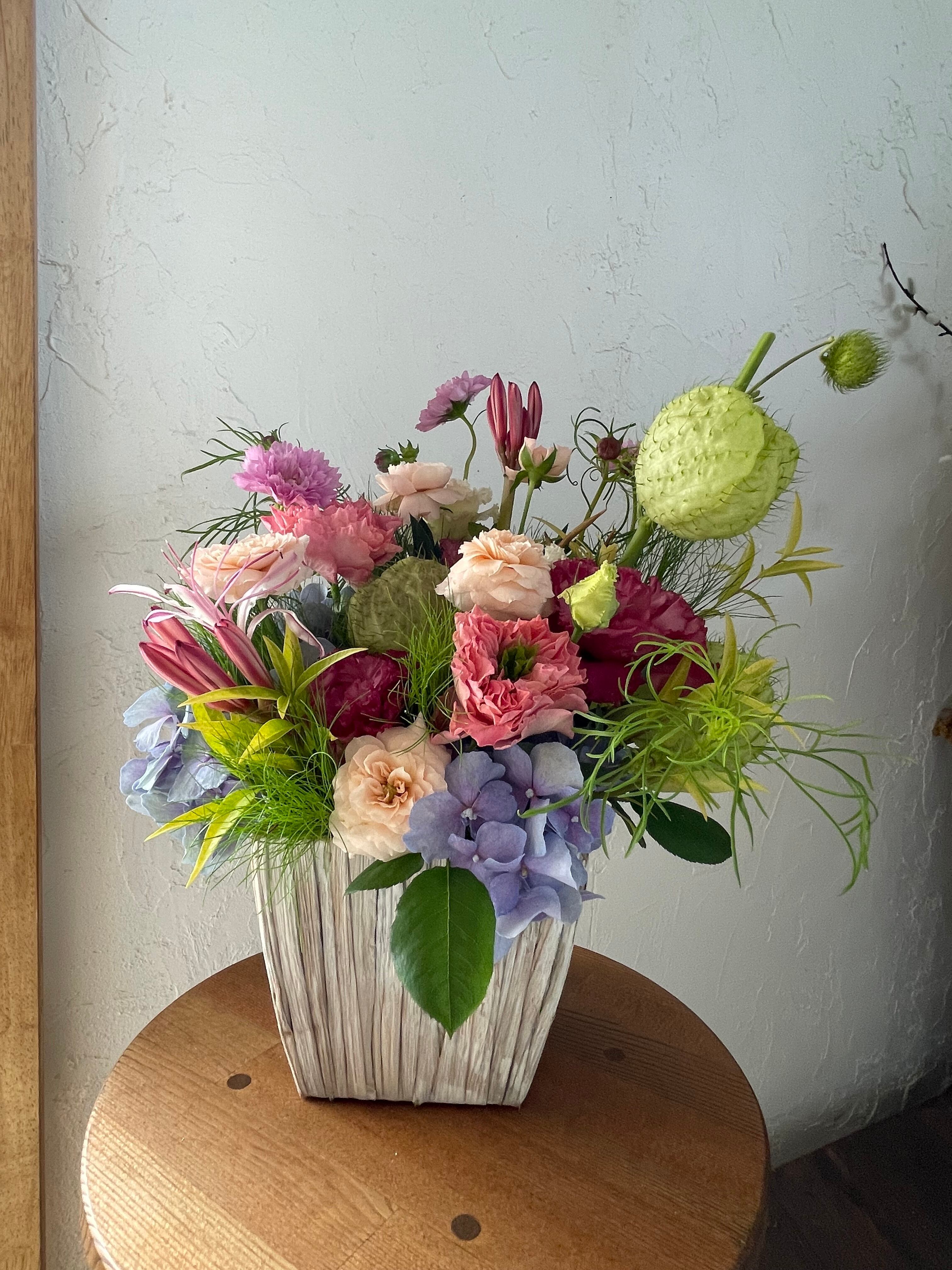 その時いちばんおすすめな新鮮な生花をシンプルなベースにアレンジしてお作りします。